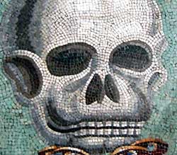 the LOOK of this fuzz box reproduces a particular of the "Memento Mori", a mosaic showing a skull, discovered in Pompeii.